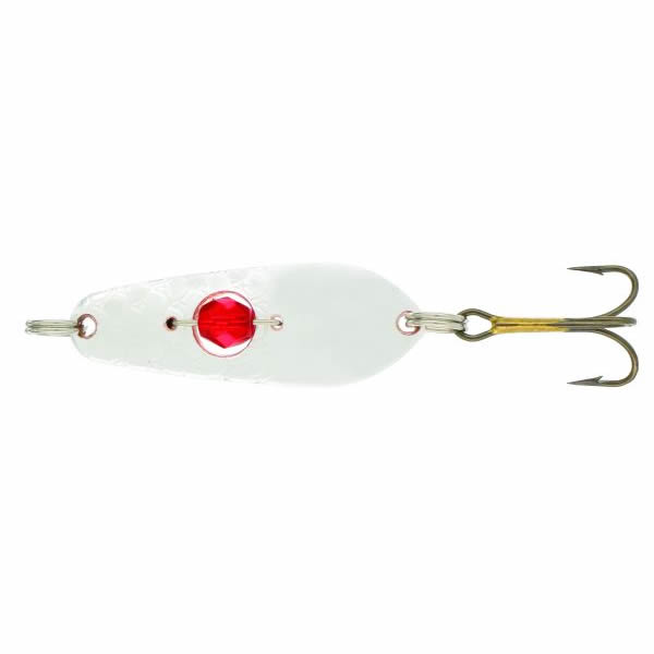 Узкий профиль и толщина блесны дает возможность успешно применять ее в речных условиях. Специальный шарик-бусинка, расположенный в корпусе блесны, переливаясь своими гранями в прозрачной воде, срабатывает, как дополнительный раздражающий фактор для атаки.