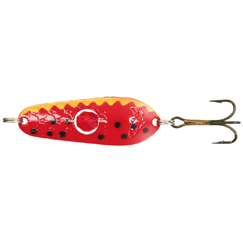 Блесна колеблющаяся Kuusamo Rasanen 50/11 с камнем BL/R/Ye-S - тонкая леска, легкий, чувствительный спиннинг, и вы гарантировано будете с уловом! Применяются на ручьях и малых реках при ловле форели, хариуса, язя и окуня. Хороший выбор для ловли в стоячих водоемах, в середине и конце лета, когда рыба предпочитает некрупные приманки. Также эта приманка с успехом применяется для отвесной ловли. Важный элемент - бусинка в теле блесны, дрожа в воде и играя своими гранями на свету, придает ей дополнительный привлекающий эффект, срабатывая как еще один раздражающий фактор для хищника.