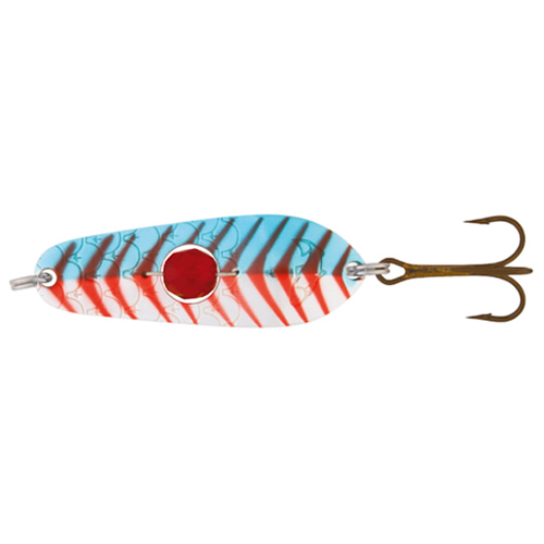 Блесна колеблющаяся Kuusamo Rasanen 50/11 с камнем BLU/S/FR-S - блесна, с которой имея тонкую леску, легкий и чувствительный спиннинг - вы гарантированно уйдете с уловом. Применяются на ручьях и малых реках при ловле форели, хариуса, язя и окуня. Хороший выбор для ловли в стоячих водоемах, в середине и конце лета, когда рыба предпочитает некрупные приманки. Также эта приманка с успехом применяется для отвесной ловли. Важный элемент - бусинка в теле блесны, дрожа в воде и играя своими гранями на свету, придает ей дополнительный привлекающий эффект, срабатывая как еще один раздражающий фактор для хищника.