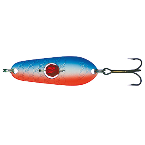 Блесна колеблющаяся Kuusamo Rasanen 50/11 с камнем BLU/W/FR-S - блесна, с которой имея тонкую леску, легкий и чувствительный спиннинг - вы гарантированно уйдете с уловом. Применяются на ручьях и малых реках при ловле форели, хариуса, язя и окуня. Хороший выбор для ловли в стоячих водоемах, в середине и конце лета, когда рыба предпочитает некрупные приманки. Также эта приманка с успехом применяется для отвесной ловли. Важный элемент - бусинка в теле блесны, дрожа в воде и играя своими гранями на свету, придает ей дополнительный привлекающий эффект, срабатывая как еще один раздражающий фактор для хищника.