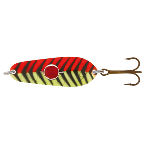Блесна колеблющаяся Kuusamo Rasanen 50/11 с камнем O/FYe/BL-S - блесна, с которой имея тонкую леску, легкий и чувствительный спиннинг - вы гарантированно уйдете с уловом. Применяются на ручьях и малых реках при ловле форели, хариуса, язя и окуня. Хороший выбор для ловли в стоячих водоемах, в середине и конце лета, когда рыба предпочитает некрупные приманки. Также эта приманка с успехом применяется для отвесной ловли. Важный элемент - бусинка в теле блесны, дрожа в воде и играя своими гранями на свету, придает ей дополнительный привлекающий эффект, срабатывая как еще один раздражающий фактор для хищника.