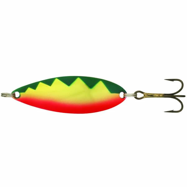 Блесна Kuusamo Latka 55/10 GR/B/R-S - эффективная щучья приманка от компании Kuusamo является тяжелой и компактной, также она будет превосходным вариантом для ловли на течении. Latka хорошо держит струю и прекрасно подходит для изучения приямков за перекатами на речках малых и средних размеров. Еще одним вариантом применения является облов глубоких ям в стоячих водоемах. Изначально приманка позиционируется как лососевая, но щука на нее отлично реагирует. Эта колеблющаяся блесна имеет ряд эффектных расцветок и ей следует воспользоваться любому любителю поохотиться за щукой.