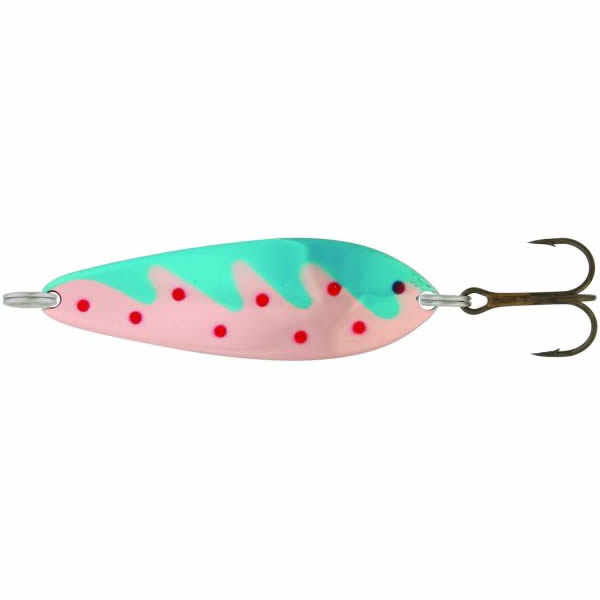 Блесна Kuusamo Latka 70/25 R/BLU-C - эффективная щучья приманка от компании Kuusamo является тяжелой и компактной, также она будет превосходным вариантом для ловли на течении. Latka хорошо держит струю и прекрасно подходит для изучения приямков за перекатами на речках малых и средних размеров. Еще одним вариантом применения является облов глубоких ям в стоячих водоемах. Изначально приманка позиционируется как лососевая, но щука на нее отлично реагирует. Эта колеблющаяся блесна имеет ряд эффектных расцветок и ей следует воспользоваться любому любителю поохотиться за щукой.