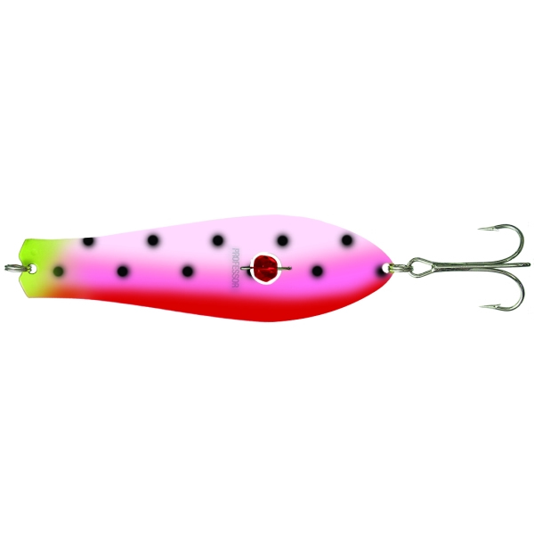 Блесна Kuusamo Professor 0, 130/44 с камнем BL/W/R/GR-C - специальная приманка охотников за крупной щукой. Самую большую блесну Professor можно использовать при ловле троллингом в тандеме с более маленькой блесной, служащей для дополнительного привлечения внимания. Эту дополнительную блесну необходимо привязать на коротком поводке перед основной блесной, на расстоянии, не менее длинны вашего удилища.