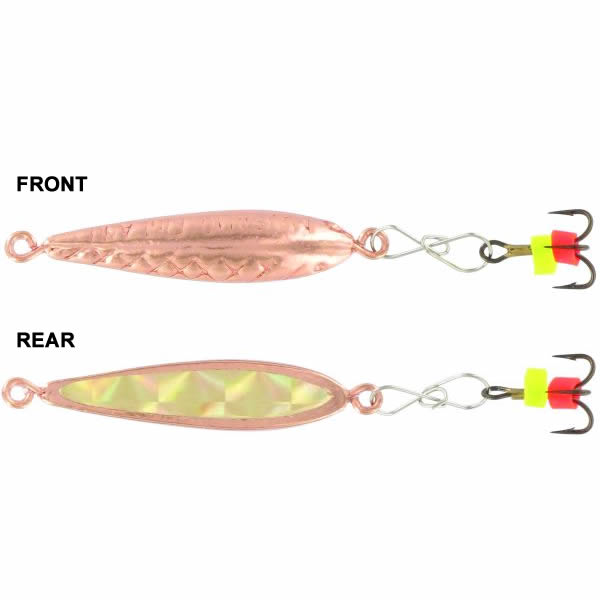 Блесна зимняя Kuusamo Kilpa-Loiste 35/3 C-G была создана экспертами бренда Kuusamo для подледной рыбалки на лососевых и любопытного окуня. Узкая пластина чуть расширяется в нижней части, что влияет на смещение центра тяжести. Это делает колебания приманки более стабильными. Разработчики рекомендуют проводку с паузами в несколько секунд. Заманчивые переливы привлекут внимание потенциальной добычи издали. Небольшой тройник прикреплен на длинной застежке, которая будет удобна для оперативной замены крючка. На цевье есть два коротких ярких отрезка кембрика.