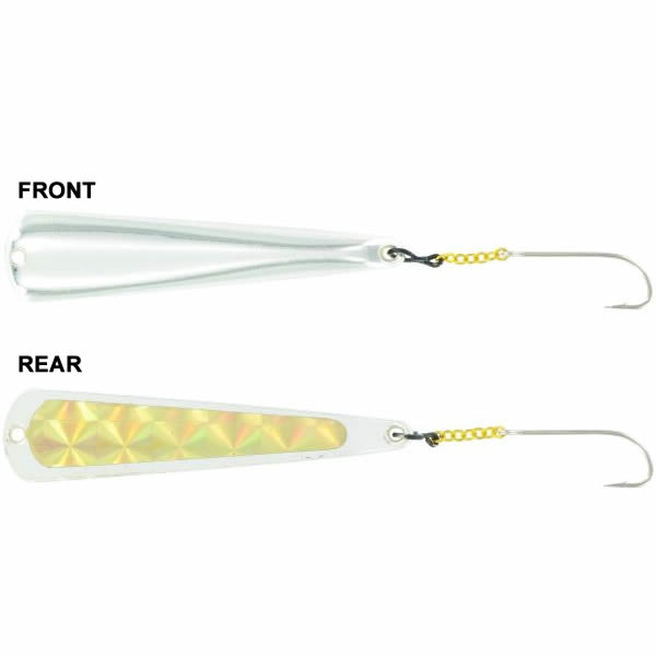 Блесна зимняя Kuusamo Simfonia 60/9 HS-G - приманка, имеющая толстую и узкую пластину, которая расширяется и уплощается кверху. Такая геометрия способствует хаотичной игре: приманка то неожиданно уходит в сторону, то начинает дрожать. Серия блесен зимняя, рассчитана на вертикальные проводки. Создатели рекомендую чередовать подбросы, встряхивания и другие приемы анимации с паузами. С такой приманкой можно охотиться на зубастую щуку, судака, окуня.