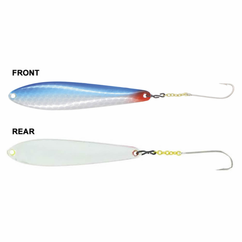 Блесна зимняя Kuusamo Varma 45/5 R/BLU/S-S, UV - зимняя колебалка, имеющая узкая пластину, которая немного расширяется кверху и напоминает геометрией прогонистого малька. Выверенная балансировка позволяет блесне не сбиваться с игры в проточных водоемах. Потому ловить с Kuusamo Varma можно окуней, щук, бершей и судаков. Разработчики рекомендуют начинать с интенсивной анимации. Мощные гидроакустические колебания приманят потенциальную добычу к лунке. После - рационально сменить темп проводки на более спокойный. В оснащении приманки - одинарник, подвешенный на цепочке.
