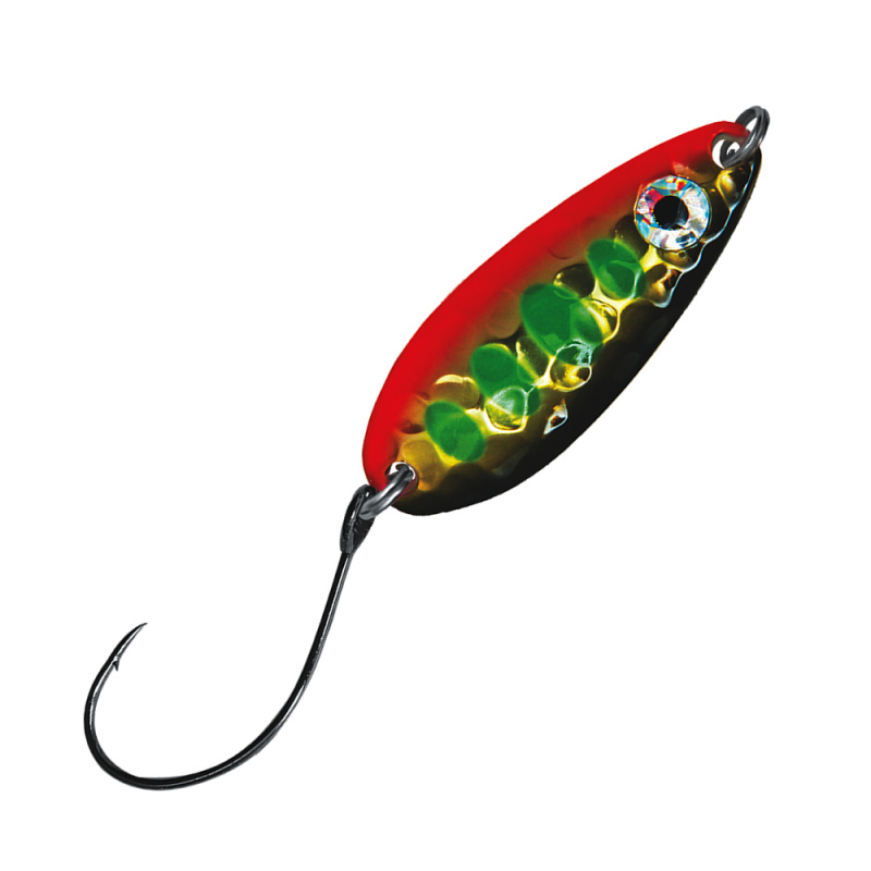 Ее можно с успехом применять для ловли стайного окуня, а также форели на платниках. На внешней поверхности имеется рельефное тиснение, создающее красивую игру света. Блики помогут притянуть даже самую капризную рыбу. Phantom-ST оснащается одинарником с маленькой бородкой.
