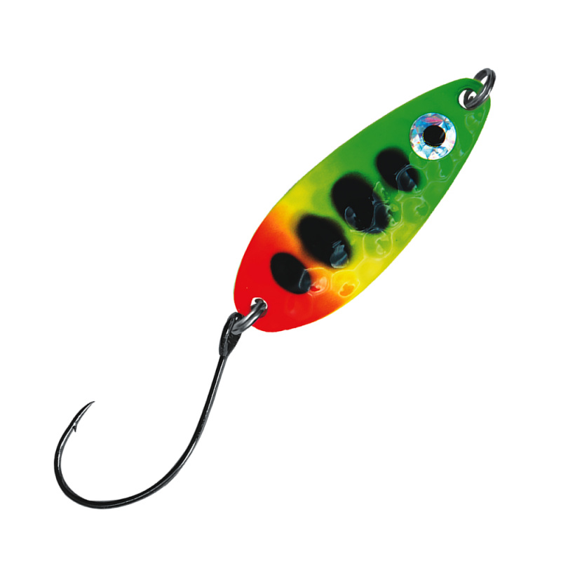 Ее можно с успехом применять для ловли стайного окуня, а также форели на платниках. На внешней поверхности имеется рельефное тиснение, создающее красивую игру света. Блики помогут притянуть даже самую капризную рыбу. Phantom-ST оснащается одинарником с маленькой бородкой.