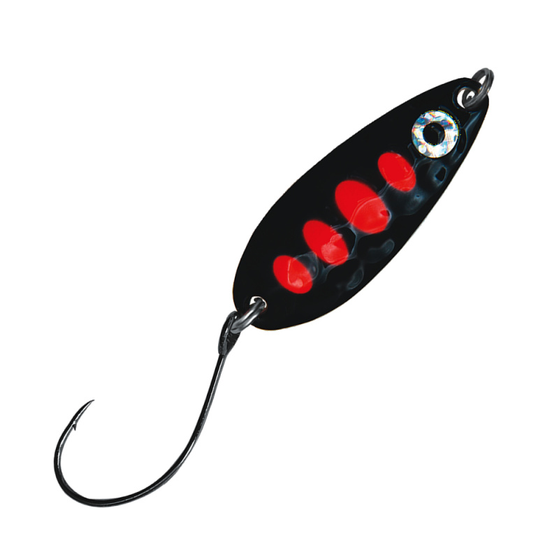 Ее можно с успехом применять для ловли стайного окуня, а также форели на платниках. На внешней поверхности имеется рельефное тиснение, создающее красивую игру света. Блики помогут притянуть даже самую капризную рыбу. Phantom-ST оснащается одинарником с маленькой бородкой.