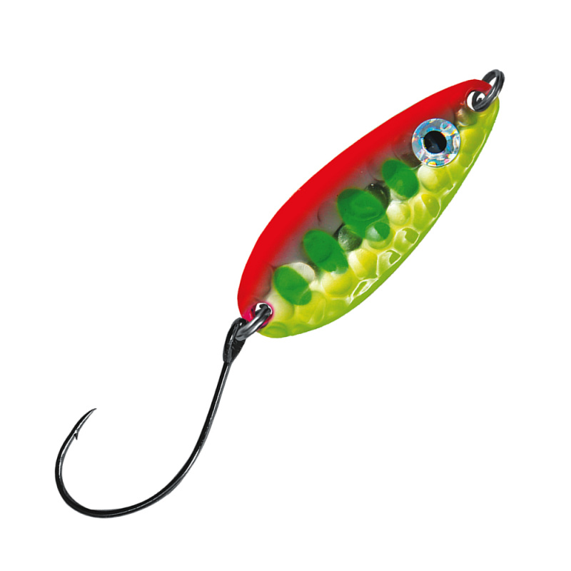 Ее можно с успехом применять для ловли стайного окуня, а также форели на платниках. На внешней поверхности имеется рельефное тиснение, создающее красивую игру света. Блики помогут притянуть даже самую капризную рыбу. Phantom-ST оснащается одинарником с маленькой бородкой.