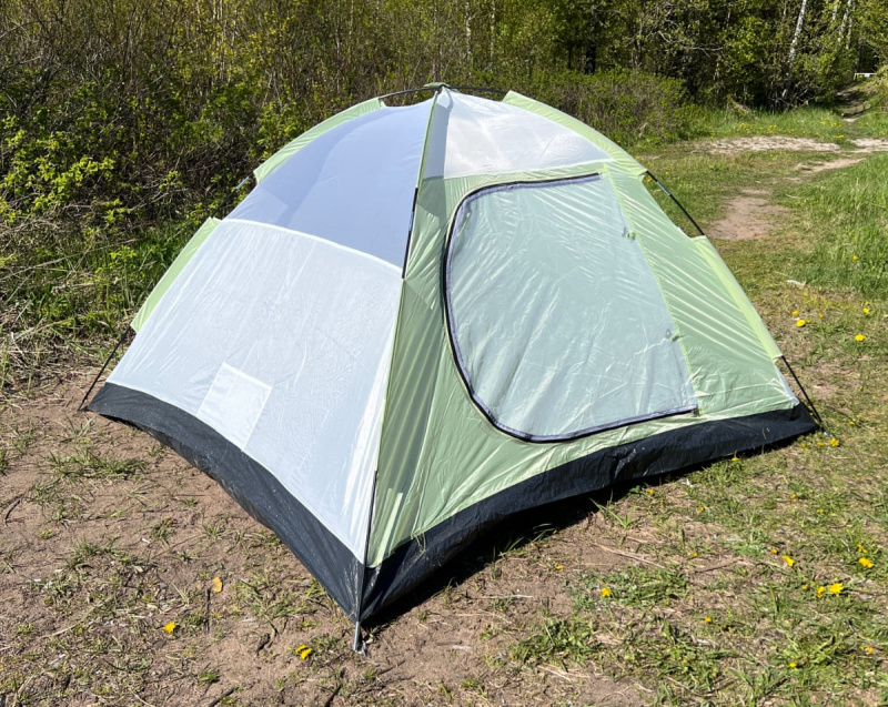 Быстросборная двухслойная палатка с увеличенным тамбуром и дополнительным козырьком над центральным входом. Внутренний слой — дышащий материал Taffeta 175. Наружный тент выполнен из водонепроницаемого плотного материала Taffeta 190T75D с покрытием PU-2500. Внутренние швы проклеены и заламинированы.
