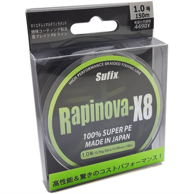 Плетеный шнур Sufix Rapinova-X8 150 м PE 1.0/ 0,165мм 8,5кг ярко-зеленый