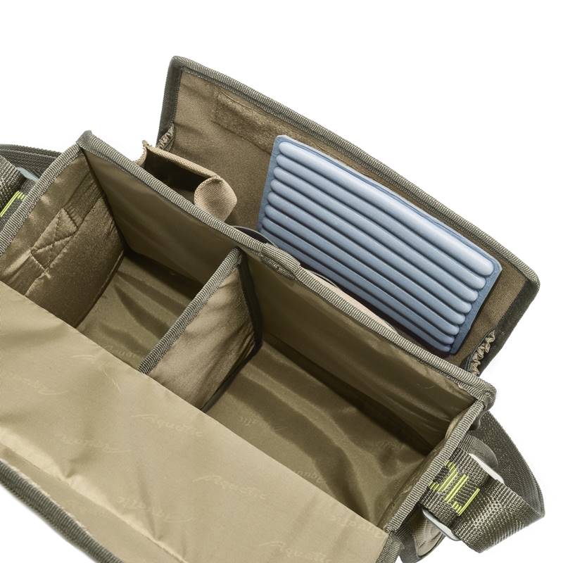 Полужесткая непромокаемая формованная сумка Aquatic специально разработана для ходовой рыбалки. Сумка состоит из 2 отделений. Сзади расположен карман по всей длине сумки. Специальная рифленая вставка позволит всегда иметь под рукой необходимые приманки.
