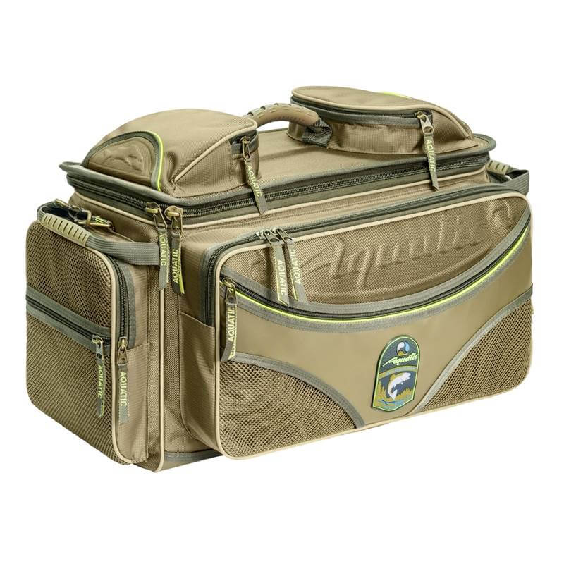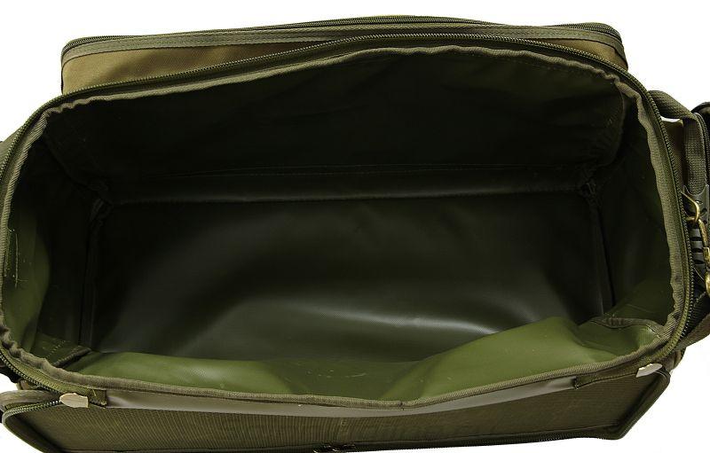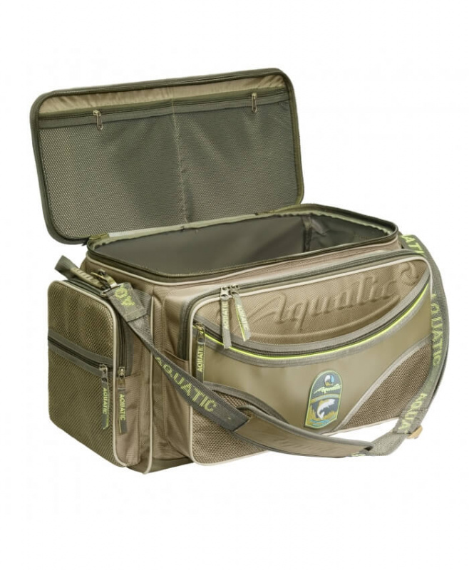 Рыболовная технологичная сумка Aquatic объемом 50 л. с жестким верхом изготавливается из нейлоновых материалов. Сумка Aquatic С-07 прежде всего рассчитана для использования в лодке. Конструкция позволяет сумке (держать форму) даже в не полностью наполненном состоянии, что обеспечивает удобный доступ внутрь. По периметру сумки расположены объемные карманы дублированные карманами на молнии из сетки. Внутри также имеются карманы для мелочей. В дно сумки вставлен пластик и дно изготовлено из ПВХ материала. На сумке имеется светоотражающая отделка, позволяющая с помощью фонаря обнаружить сумку в темное время суток.