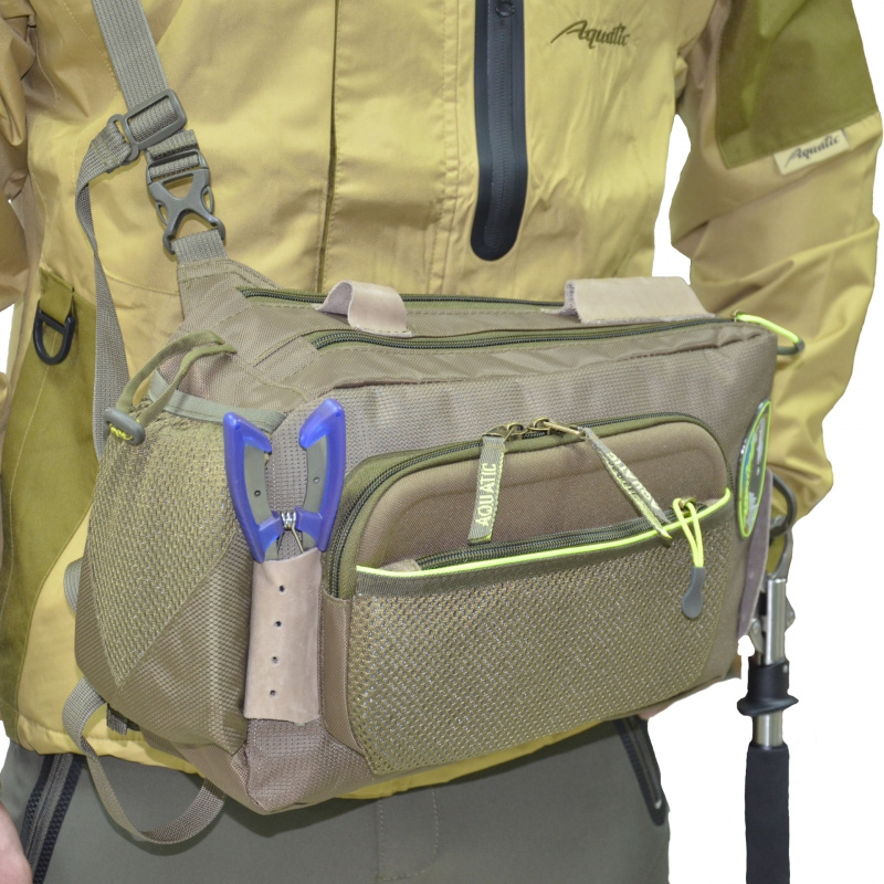 Многофункциональная сумка Aquatic С-26 разработана специально для ходовой рыбалки, в том числе взабродку. Функционал: 2 отделения, 4 дополнительных кармана, многочисленные точки крепления для инструментов и рыболовных аксессуаров, D-образное кольцо, карабин для крепления аксессуаров, карман на молнии для мобильных устройств, фонаря.