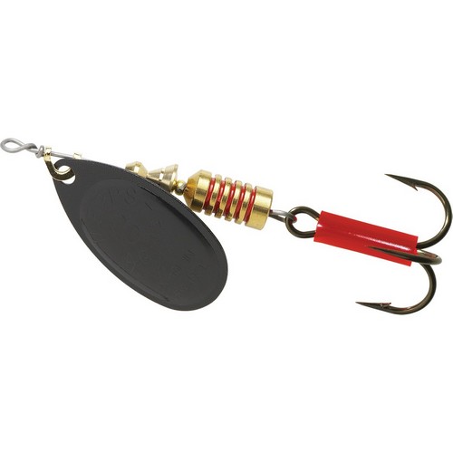 Вертушка Mepps Aglia 3 Black обладает и хорошими кастинговыми показателями. Внешне конструкцию Aglia 3 можно назвать классической: овальный лепесток, цилиндрический сердечник с шумовыми проточками. Блесна легко "заводится", лепесток вращается без залипаний на мягких, неспешных проводках. Он создает значительное сопротивление воде, потому вызывает мощные вибрации.