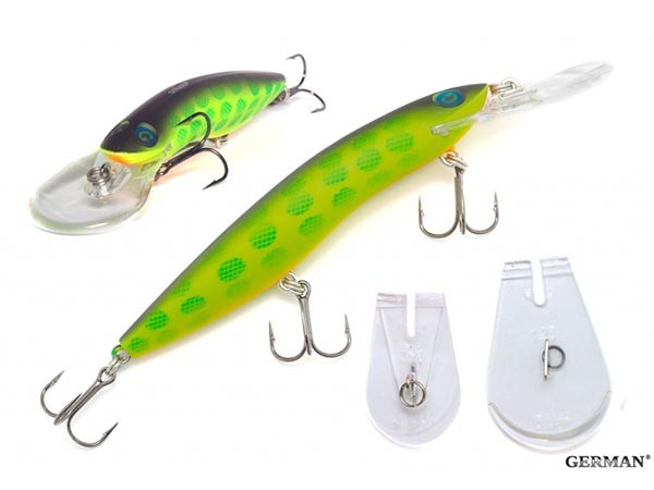 Воблер German Aggressor V3 125F - C013 - характеризуется особой игрой: корпус приманки колеблется из стороны в сторону во время проводки. Воблеры издают легкий шум и оснащены лопастью, которая гарантирует исключительную прочность при возможных соприкосновениях с подводными препятствиями. Хотя в основном рыболовы используют воблер German Aggressor при ловле троллингом, она идеально подходит также для кастинга. При ловле на водоеме с рельефным дном хвостовая часть приманки позволяет ей избежать зацепов, если вовремя ослабить леску. Если вам необходимо достичь самой скоростной проводки при троллинге, снимите крючок, который находится в центральной части приманки. Важным достоинством воблеров German Aggressor является сменная носовая лопасть, фиксируемая в корпусе специальным замком. Каждый воблер комплектуется двумя сменными лопастями – для стандартной и углубленной проводки. Покупая воблер German Aggressor, вы становитесь обладателем сразу двух разных приманок.