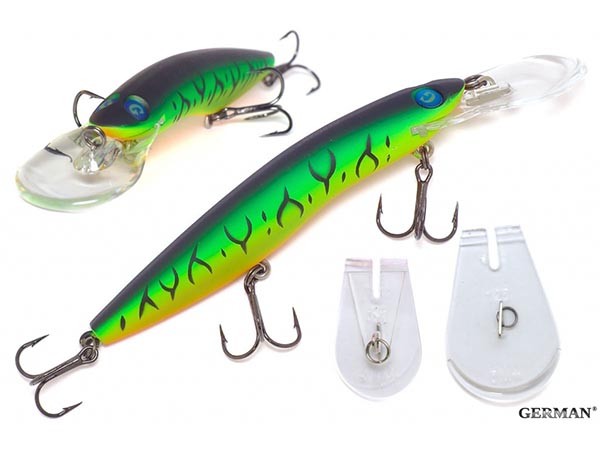 Воблер German Aggressor V3 125F - C217 - характеризуется особой игрой: корпус приманки колеблется из стороны в сторону во время проводки. Воблеры издают легкий шум и оснащены лопастью, которая гарантирует исключительную прочность при возможных соприкосновениях с подводными препятствиями. Хотя в основном рыболовы используют воблер German Aggressor при ловле троллингом, она идеально подходит также для кастинга. При ловле на водоеме с рельефным дном хвостовая часть приманки позволяет ей избежать зацепов, если вовремя ослабить леску. Если вам необходимо достичь самой скоростной проводки при троллинге, снимите крючок, который находится в центральной части приманки. Важным достоинством воблеров German Aggressor является сменная носовая лопасть, фиксируемая в корпусе специальным замком. Каждый воблер комплектуется двумя сменными лопастями – для стандартной и углубленной проводки. Покупая воблер German Aggressor, вы становитесь обладателем сразу двух разных приманок.