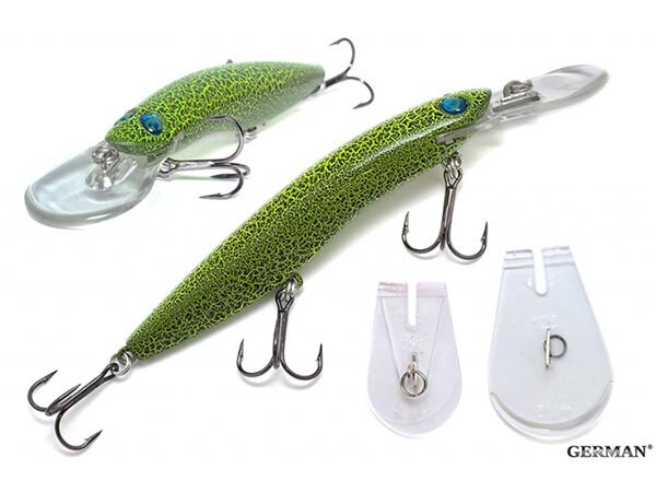 Воблер German Aggressor V3 125F - C444 - характеризуется особой игрой: корпус приманки колеблется из стороны в сторону во время проводки. Воблеры издают легкий шум и оснащены лопастью, которая гарантирует исключительную прочность при возможных соприкосновениях с подводными препятствиями. Хотя в основном рыболовы используют воблер German Aggressor при ловле троллингом, она идеально подходит также для кастинга. При ловле на водоеме с рельефным дном хвостовая часть приманки позволяет ей избежать зацепов, если вовремя ослабить леску. Если вам необходимо достичь самой скоростной проводки при троллинге, снимите крючок, который находится в центральной части приманки. Важным достоинством воблеров German Aggressor является сменная носовая лопасть, фиксируемая в корпусе специальным замком. Каждый воблер комплектуется двумя сменными лопастями – для стандартной и углубленной проводки. Покупая воблер German Aggressor, вы становитесь обладателем сразу двух разных приманок.