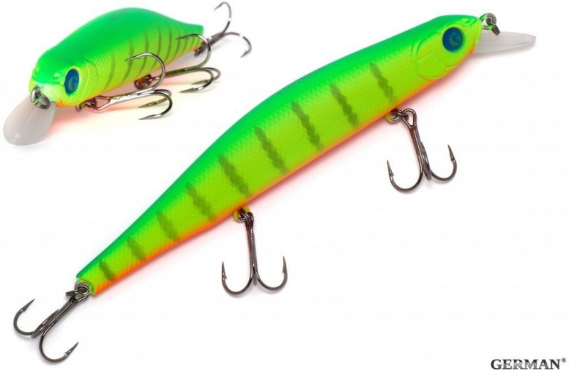 Воблер German Evil Pike 110F - C008 - это классический воблер из разряда воблеров "big-minnow", предназначенный для ловли щуки, в различных местах.