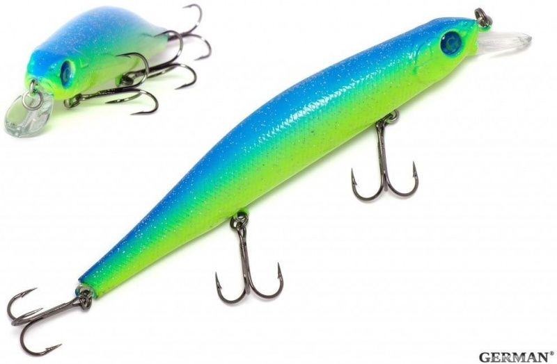 Воблер German Evil Pike 110F - C203 - это классический воблер из разряда воблеров "big-minnow", предназначенный для ловли щуки, в различных местах.