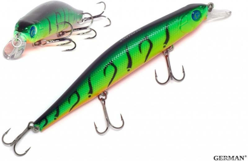 Воблер German Evil Pike 110F - C205 - это классический воблер из разряда воблеров "big-minnow", предназначенный для ловли щуки, в различных местах.