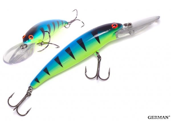 Воблер German GG Bomb 8.5см/14гр цвет С115 - данная модель выпускается в двух типоразмерах: 85 и 115 мм, а также с разным заглублением до 3,5-4 и до 6 метров соответственно. Этакая отмычка к хищнику, которого нужно найти обловив наиболее популярные горизонты предпочитаемых им. Две версии одной приманки, позволят вам сделать это беспрепятственно. Помимо судака, эта модель прекрасно ловит и других пресноводных хищников. Позволяет ловить как в заброс, так и троллингом. Округлые формы лопатки помогают избежать закапывания в дно и сводят к минимуму вероятность зацепов о донный рельеф.