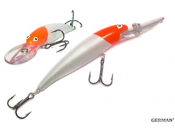 Воблер German GG Bomb 8.5см/14гр цвет С147 - данная модель выпускается в двух типоразмерах: 85 и 115 мм, а также с разным заглублением до 3,5-4 и до 6 метров соответственно. Этакая отмычка к хищнику, которого нужно найти обловив наиболее популярные горизонты предпочитаемых им. Две версии одной приманки, позволят вам сделать это беспрепятственно. Помимо судака, эта модель прекрасно ловит и других пресноводных хищников. Позволяет ловить как в заброс, так и троллингом. Округлые формы лопатки помогают избежать закапывания в дно и сводят к минимуму вероятность зацепов о донный рельеф.