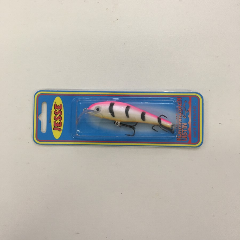Воблер Jesse Saddle JE8 цвет 35 — длинное, худое тело с едва заметным спинным изгибом. Реалистичные глаза-наклейки со светоотражателем. Прозрачная лопасть для заглублений специальной, седловидной формы. Дает занырнуть на несколько метров создавая двухпроекционную игру. Изогнутая лопатка создает эффект качелей. Дополняя проводку поперечными перемещениями и вибрацией. Тройники в средней и хвостовой частях с химической заточкой Mustad UltraPoint не подведут. Крепежное кольцо поднято выше лопасти, что удобно при привязывании лески. Производитель выпускает и крапистые и полосатые приманки данной серии. Металлические шарики дополняют ее, разнося шус в водной глади.