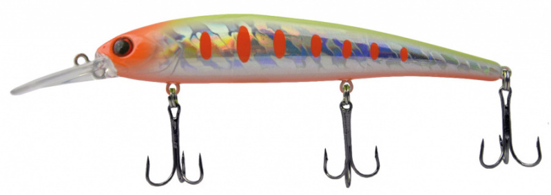 Воблер LureMax KILLER 120F MDR-043 17,5 г. предназначен для ловли троллингом на глубине 2-3,5 м. Приманка легко заглубляется на необходимую глубину и стабильно удерживает заданный горизонт. Благодаря высокочастотной игре и шумовому эффекту от акустической камеры, оснащенной металлическими шариками, Killer 120F соблазнит на поклевку самого пассивного хищника. Воблер оснащен системой дальнего заброса. Основные объекты ловли - судак, щук, окунь, сом.