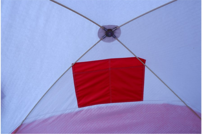 Материал тента: внешний слой Оксфорд 210d, внутренний слой - термостежка (таффета 190Т + синтепон). Верх палатки - вставка из дышащей ткани Грета