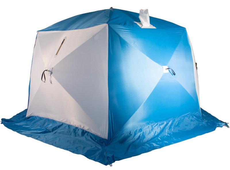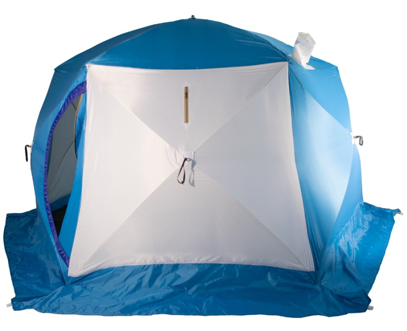 Конструкция имеет вывод под печную трубу, что дает дополнительные возможности для обогрева в холодное время года. Также есть москитная сетка, а значит, палатка подойдет и для летних походов.